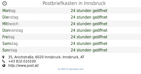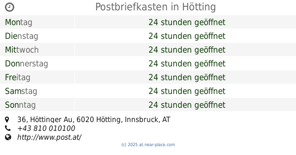 | Dienstag | 24 stunden geöffnet | |||||