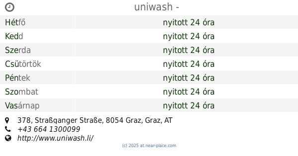 ::Sehr gut gelegene Autowaschanlage, waschbox mit lanzenwäsche! Uniwash ist die beste in der Region , hier wird das Auto wirklich sauber, keine Flecken nach der wäsche, beim 1. Waschgang ist das Wasser richtig heiß, ausserdem gibt es Zeiten wo man zum Spartarif waschen kann, also man wäscht länger! Auch Sauger und ausreichen Mistkübel vorhanden, Papiergeld wechsler für Waschjetons falls man kein Kleingeld hat