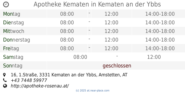 | Samstag | geschlossen | |||||