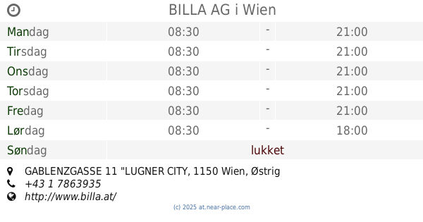 | Søndag | lukket | |||||